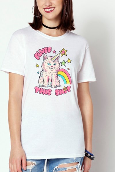 Use these cute cats to speak your truth when wearing this Fluff This Shit T Shirt. This awesome tee features the work of Hillary White Rabbit and is sure to have you looking and feeling your best. Officially licensed Exclusively at Spencers Crewneck Short sleeves Material: Cotton Care: Machine wash; tumble dry low Imported This tee is Unisex Sizing only For a fitted look, order one size smaller than your normal size Note: This item is print to order and may have a 1 to 2 day extra processing time.