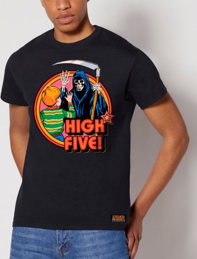 Maybe the Grim Reaper isn't such a bad guy after all. This Steven Rhodes graphic tee features a little boy sharing a warm high five with the scythe-carrying bringer of death. Officially licensed Crewneck Short sleeves Material: Cotton Care: Machine wash; tumble dry low Imported This shirt is Unisex Sizing only For a fitted look, order one size smaller than your normal size Note: This item is print to order and may have a 1 to 2 day extra processing time.