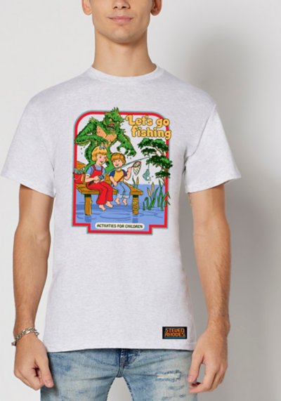 Bring your sense of humor with you wherever you go in this Steven Rhodes Let's Go Fishing T Shirt! This funny graphic tee with its kids and monsters theme is sure to be a hit with everyone who sees you. Officially licensed Crewneck Short sleeves Material: Cotton Care: Machine wash; tumble dry low Imported This shirt is Unisex Sizing only For a fitted look, order one size smaller than your normal size Note: This item is print to order and may have a 1-2 day extra processing time.