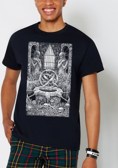 Embrace your dark side and upgrade your wardrobe when you get this officially licensed Death Chamber T Shirt by Sawblade666. This stylish tee is sure to make your outfit pop! Officially licensed Exclusively at Spencer's Crewneck Short sleeves Material: Cotton Care: Machine wash; tumble dry low Imported This shirt is Unisex Sizing only For a fitted look, order one size smaller than your normal size Note: This item is print to order and may have a 1 to 2 day extra processing time.
