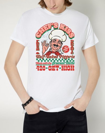 Add a fresh and hot new look to your casual outfit by adding this Chef's Kiss T Shirt to your casual wardrobe. This awesome tee from Made With Awesome is sure to have you looking and feeling your best in any situation. Exclusively at Spencer's Crewneck Short sleeves Material: Cotton Care: Machine wash; tumble dry low Imported This shirt is Unisex Sizing only For a fitted look, order one size smaller than your normal size Note: This item is print to order and may have a 1-2 day extra processing time.