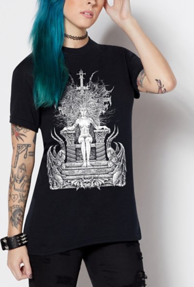 Show off your emo style everywhere you go when you hit the town rocking this Queen of Hell T Shirt. This stylish tee is an easy way to add personality to any boring look and is sure to have you standing out in any crowd! Officially licensed Crewneck Short sleeves Material: Cotton Care: Machine wash; tumble dry low Imported This shirt is Unisex Sizing only For a fitted look, order one size smaller than your normal size Note: This item is print to order and may have a 1-2 day extra processing time.