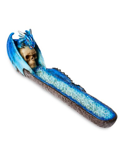 Got a dark side? Show it off and get some soothing vibes going when you use this dragon skull incense burner! This bold addition to your home decor is sure to add the perfect touch. Dimensions: 3.7" H x 11.5" W x 2.1" D Material: Polyresin Care: Spot clean Imported.