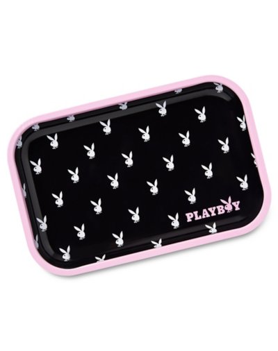 Add playful taste to your space with this Playboy tray. Featuring an allover print of Playboy's classic rabbit head logo, this tray doubles as a cute decoration and a convenient flat surface. Officially licensed Exclusively at Spencer's Dimensions: 11" L x 7" W x 0.5" D Material: Tin Care: Spot clean Imported.