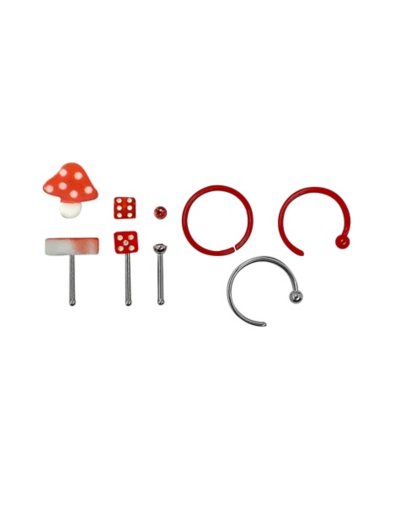 Buy Multi-Pack Mushroom and Dice Nose Pins and Hoop Nose Rings 6 Pack - 20 for $19.99 at @ Spencersonline.com