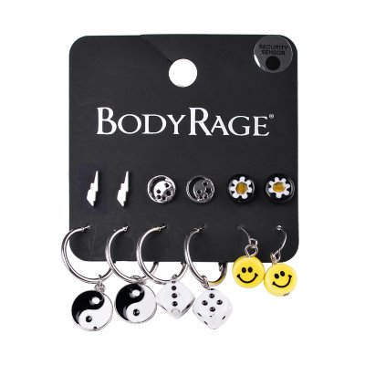 Buy Multi-Pack Yin Yang Smiley Face Dice Lightning Bolt Flower Earrings for $12.99 at @ Spencersonline.com
