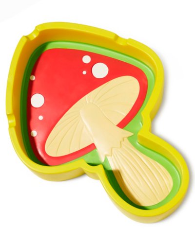 Bring a hip, retro vibe to your home with this mushroom shaped ashtray! With its bold colors and fun design, this ashtray is sure to make anyone who sees it smile. Dimensions: 4" H x 5.5" W x 1" D Material: Resin Care: Hand wash Imported.