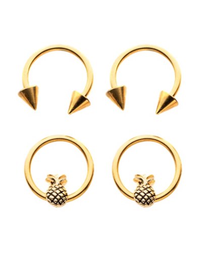 Buy Pineapple Horseshoe Rings 4 Pack - Gauge for $16.99 at @ Spencersonline.com