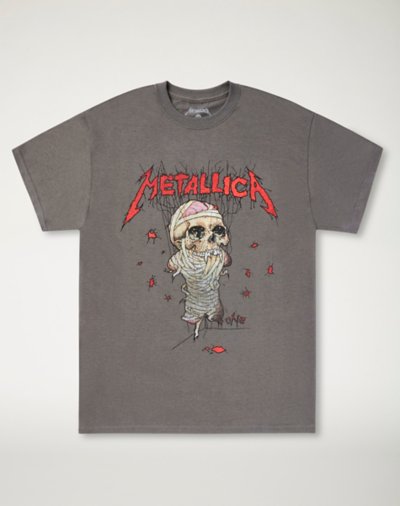 Crank up the rock and get ready to headbang when you wear this officially licensed Metallica T Shirt. Featuring images of a bloody skeleton and the Metallica logo, this tee will definitely show off your hardcore side. Officially licensed Crewneck Short sleeves Material: Cotton Care: Machine wash; tumble dry low Imported This shirt is Unisex Sizing only For a fitted look, order one size smaller than your normal size.
