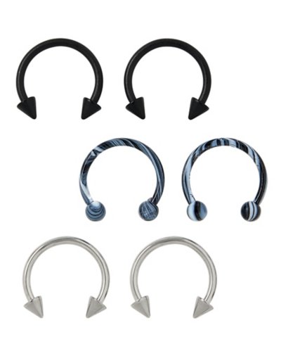 Buy Multi-Pack Silver Black and Marble Horseshoe Rings 6 Pack - Gauge for $19.99 at @ Spencersonline.com