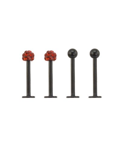 Buy Multi-Pack CZ Black and Red Labret Lip Rings 4 Pack - Gauge for $16.99 at @ Spencersonline.com