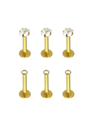 Multi-Pack Goldtone CZ Labret Lip Rings 6 Pack - Gauge