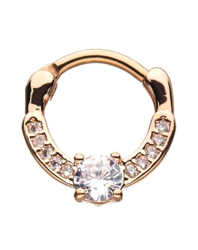 Rose Goldtone CZ Clicker Septum Ring - Gauge