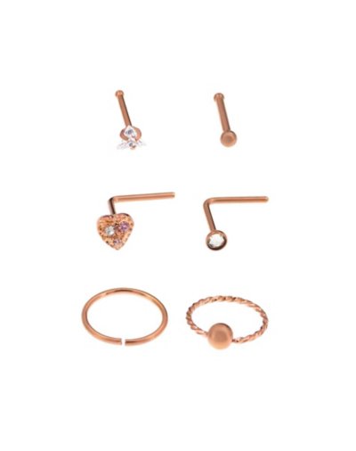 Buy Multi-Pack Rosegold Plated Nose Rings 6 Pack - Gauge for $19.99 at @ Spencersonline.com