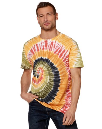You'll be sure to stick out in any crowd once you incorporate some tie-dye into your look with this stylish orange and green tie-dye t shirt. You'll be sure to get plenty of compliments on your unique new style when you sport this flashy t shirt. Crewneck Short sleeves Material: Cotton Care: Machine wash Imported.