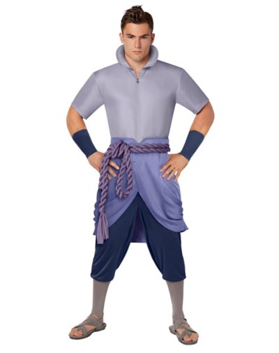 Instantly transform into your favorite character from the anime series Naruto Shippuden when you wear this officially licensed Adult Sasuke Costume. Featuring a jumpsuit with Sasuke's fashionable upturned collar, an overskirt, a belt, and armbands, this costume is perfect for any Naruto Shippuden fan! Officially licensed Includes: Jumpsuit Overskirt Belt 2 Armbands Short sleeves Zipper closure Material: Polyester Care: Spot clean Imported Note: Shoes not included.