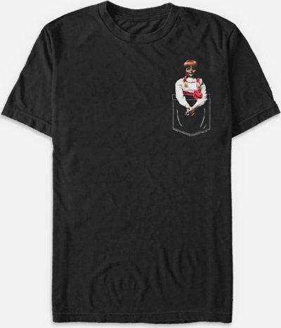 Consider yourself the ultimate fan of horror? Gear up in this officially licensed Annabelle Pocket T Shirt and everyone will know youve got great movie taste! Youll love rocking this comfortable tee this and showing your love for scary movies once you add it to your collection. Officially licensed Crewneck Short sleeves Material: Cotton Care: Machine wash; tumble dry low Imported This shirt is Unisex Sizing only For a fitted look, order one size smaller than your normal size Note: This item is print to order and may have a 1-2 day extra processing time.