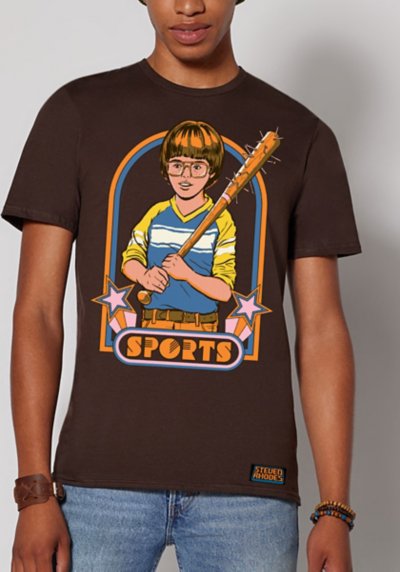 Celebrate extreme sports in this officially licensed Steven Rhodes graphic tee. Featuring a happy young boy wielding a baseball bat studded with sharp nails, this t shirt is definitely extreme! Officially licensed Crewneck Short sleeves Material: Cotton Care: Machine wash; tumble dry low Imported This shirt is Unisex Sizing only For a fitted look, order one size smaller than your normal size Note: This item is print to order and may have a 1 to 2 day extra processing time.