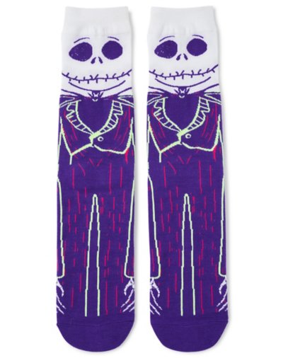 Put a colorful spin on your The Nightmare Before Christmas fandom with these glow in the dark Jack Skellington socks! These fun socks are sure to get you plenty of compliments whenever you wear them! Hold under direct incandescent or LED Light for 1-5 minutes to activate glow Officially licensed Material: Cotton, polyester, spandex Care: Machine wash Imported.