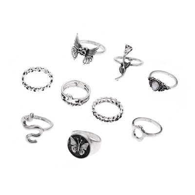Exclusively at Spencer's Includes: 9 rings Material: Resin Plating Material: Silver Ring size: Multiple sizes Jewelry Care: Wipe clean or Spencer's Jewelry Wipes Imported Note: Do not use any harsh, alcohol-based chemicals as this may cause tarnishing This is a decorative item and should not be worn to sleep.