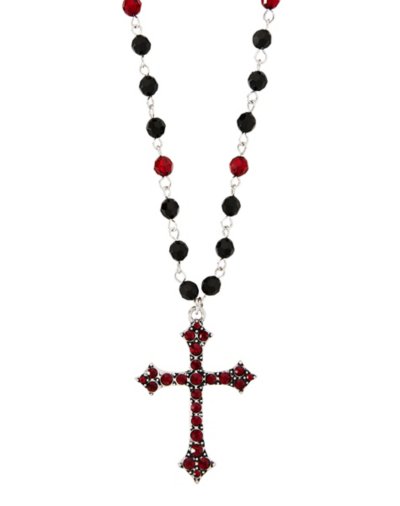 Buy Black and Red Cross Rosary Necklace for $14.99 at @ Spencersonline.com