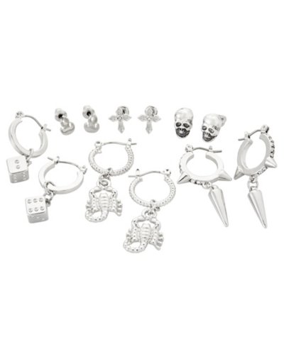 Buy Multi-Pack Silver Skull Scorpion and Dice Stud and Huggie Hoop Earring for $14.99 at @ Spencersonline.com