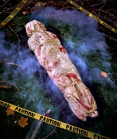 Instantly transform your home into a horrifying house of terror when you get this Bloody Body Bag decoration, which includes an inflatable body, a bloody body bag, and five twine ropes. You might be giving out the best candy on the block, but your neighbors will be terrorized by this creepy decoration. Includes: Inflatable Body bag Twine ropes Dimensions: 68" H x 24.7" W Material: Polyester Care: Spot clean Imported.