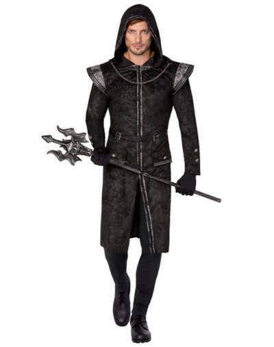 With a mastery of magic and spells, plus an ability to fight like a warrior, the warlock is a formidable foe for anyone they cross paths with. You may be short on the magic and fighting, but this Warlock costume will have you looking the part like you came straight from the realm of fantasy. Exclusively at Spirit Halloween Includes: Jacket with attached chain Necklace Staff Long sleeves Velcro closure Shirt Length: About 26.5" from shoulder to hem Material: Polyester Care: Spot clean Imported Note: Shoes and pants not included.