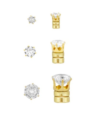 Buy CZ Goldtone Magnetic Fake Earrings - 3 Pair for $14.99 at @ Spencersonline.com