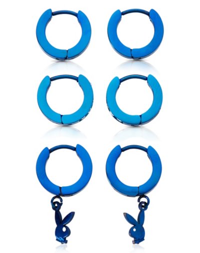 Buy Multi-Pack Blue Playboy Bunny Dangle Hoop Earrings - 3 Pair for $29.99 at @ Spencersonline.com