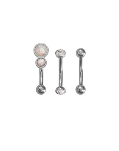 Exclusively at Spencer's Includes: 3 Curved barbells Piercing Type: Rook Barbell Material: 316L Surgical steel Gauge: Gauge/1.2mm Length: 5/16" Ball Size: 3mm Stone Type: Cubic zirconia Externally threaded closure Jewelry care: Clean with antibacterial soap and warm water Piercing care: Clean withH2Ocean Aftercare Spray(sold separately) or saline solution Imported Note: Do not use any harsh, alcohol-based chemicals as this may cause tarnishing Do not over-thread or apply excess pressure when adding/removing beads as breakage could occur Surgical steel may contain trace amounts of nickel.