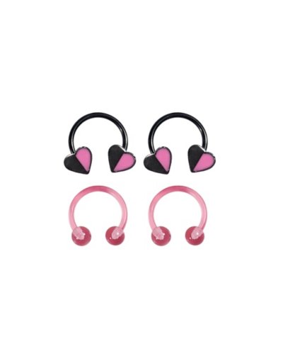 Exclusively at Spencer's Includes: 4 Horseshoe rings Piercing Type: Multiple Barbell Material: 316L surgical steel Accent Material: Acrylic Ion plating Gauge: 16 Gauge/1.2mm Length: 3/8" Ball Size: 3mm Externally threaded Jewelry Care: Clean with antibacterial soap and warm water Piercing Care: Clean with H2Ocean Aftercare Spray (sold separately) or saline solution Imported Note: Do not use any harsh, alcohol-based chemicals as this may cause tarnishing Do not over-thread or apply excess pressure when adding/removing beads as breakage could occur Wear in healed piercings only. If irritation occurs, remove immediately Surgical steel may conta.