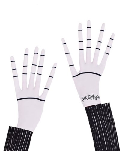 Complete your Jack Skellington costume with these skeletal gloves! These officially licensed gloves feature black andboney detailing and are sure to take your Pumpkin King ensemble to the next level. Officially licensed Includes: 1 pair of gloves Material: Polyester, spandex Care: Spot clean Imported.