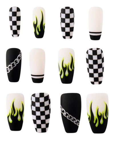 Get ready to jam out this spooky szn when you wear these punk rock press on nails. With 12 different styles to choose from, this fingernail set is perfect for you! Includes: 24 press on nails Material: Plastic, adhesive Imported.