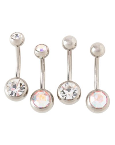 Buy Multi-Pack CZ Silvertone Belly Rings 4 Pack - Gauge for $21.99 at @ Spencersonline.com