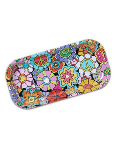 Have a groovy time when you add this retro floral tray to your home. With its sixties-inspired flowers and plenty of room, it's the perfect tray for holding your jewelry, keys or any other valuable items. This cool and convenient tray will instantly brighten up any room. Dimensions: 8" L x 4" W Material: Tin Care: Spot clean Imported.