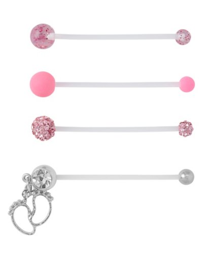 Buy Multi-Pack Pink CZ Footprint Pregnancy Belly Rings 4 Pack - Gauge for $19.99 at @ Spencersonline.com