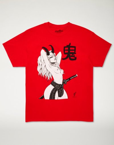 Add a fresh new look to any casual outfit by rocking this red Oni Girl T Shirt. This stylish tee will have you feeling like a total badass and features a cool Oni inspired girl on the front. Exclusively at Spencer's Crewneck Short sleeves Tagless Material: Cotton Care: Machine wash Imported This shirt is Unisex Sizing only For a fitted look, order one size smaller than your normal size.