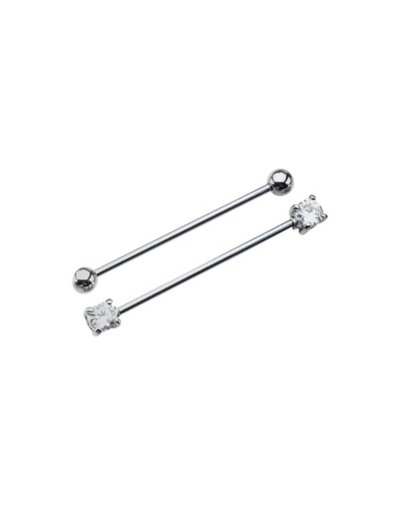 This 316L Surgical Steel cubic zirconia gem silver industrial barbell set contains TWO pieces and is available in 14G; 1 3/8". Includes: 2 Industrial Barbells Piercing Type: Industrial Material: 316L Surgical steel Accent Material: Metal alloy Barbell Size: 14 Gauge Barbell Thickness: 1.6mm Barbell Length: 35mm Threading Type: External Threaded closure Jewelry Care: Clean with antibacterial soap and warm water Piercing Care: Clean with saline solution Imported Note: Do not use any harsh, alcohol-based chemicals as this may cause tarnishing Do not over-thread or apply excess pressure when adding/removing beads as breakage could occur Surgical steel may contain trace amounts of nickel.