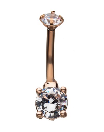 Rose Gold Crystal Clear Gem Belly Ring - 14 Gauge