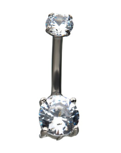 Piercing Type: Belly Barbell Material: 316L Surgical steel Accent Material: Steel Stone type: Cubic zirconia Gauge: 14 Gauge/1.6mm Length: 5/16" Threaded closure Jewelry Care: Clean with antibacterial soap and warm water Piercing Care: Clean with saline solution Imported Note: Do not use any harsh, alcohol-based chemicals as this may cause tarnishing Do not over-thread or apply excess pressure when adding/removing beads as breakage could occur Surgical steel may contain trace amounts of nickel.