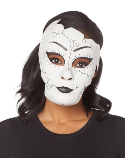 Playtime just got a whole lot creepier with this broken doll mask! Featuring black makeup and cracks all over, this mask is the perfect choice for any scary doll costume this Halloween. Elastic band closure Dimensions: 9.75" H x 8" W x 5" D Material: Plastic Care: Spot clean Imported One size fits most.