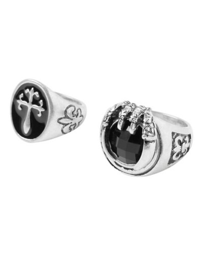 Don't neglect the details when planning your vampire costume! This cross and claw two-piece ring set adds a spine-chilling touch of authenticity to your look. These rings will strike fear into the hearts of all who see them as you lift your goblet of blood to your lips! Includes: 2 Rings Dimensions: About 1" L x .75" H Material: Zinc, plastic, epoxy Imported.