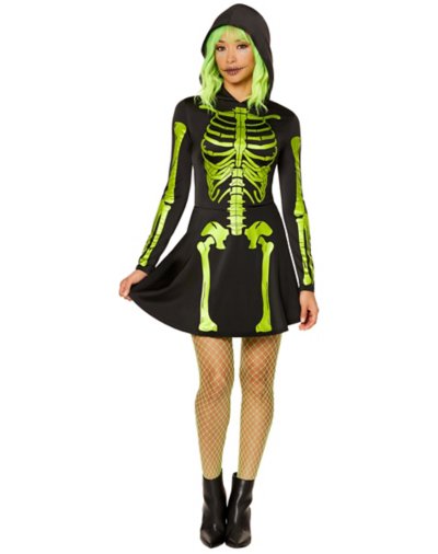Buy Adult Neon Green Skeleton Hooded Dress by Spirit Halloween for $39.99 at @ Spirithalloween.com