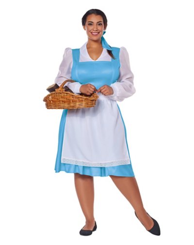 Be our guest and become your favorite Disney Princess this Halloween with ease by getting yourself this officially licensed Belle Costume. Slip on the included light blue dress, apron, and bow to complete the look and you'll look right out of a Disney movie. Find your beast this Halloween for the perfect couple costume! Officially licensed Includes: Dress Apron Bow Long sleeves Material: Polyester Pull down closure Care: Spot clean Imported.