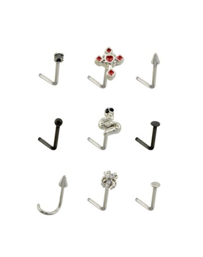 Buy Multi-Pack Titanium Cross and Spider L-Bend Nose Pins 9 Pack - Gaug for $34.99 at @ Spencersonline.com
