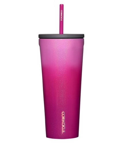 Make every stip a stylish one with this ombre unicorn kiss insulated pink cup with straw! This convenient cup can sit in your car's cup holder and will keep your hot drinks hot and cold drinks cold. Dimensions: 10.9" H x 3.8" W x 3.8" D Capacity: oz. BPA-free Material: Stainless steel, polypropylene, silicone Care: Dishwasher safe Imported.