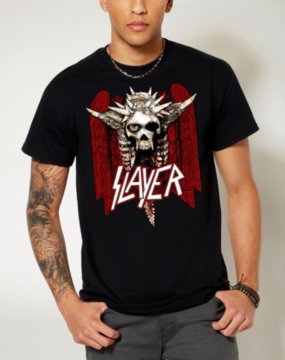 Love to rock out to Slayer? You want this bold Slayer graphic tee to be a regular part of your casual wardrobe! Officially licensed Exclusively at Spencer's Crewneck Short sleeves Material: Cotton Care: Machine wash; tumble dry low Imported This shirt is Unisex Sizing only For a fitted look, order one size smaller than your normal size.