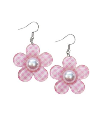 Buy Pink Plaid Flower Dangle Earrings for $12.99 at @ Spencersonline.com