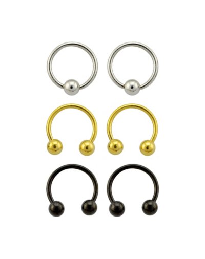 Includes: 1 Pair of captive bead rings 2 Pairs of horseshoe rings Piercing Type: Multiple Barbell Material: 316L Surgical steel Accent Material: 316L Surgical steel Gauge: Gauge/1.2mm Length: 3/8"/10mm Stone Type: Cubic zirconia Ball Size: 4mm Externally threaded closure Jewelry Care: Clean with antibacterial soap and warm water Piercing Care: Clean withH2Ocean Aftercare Spray(sold separately) or saline solution Imported Note: Do not use any harsh, alcohol-based chemicals as this may cause tarnishing Do not over-thread or apply excess pressure when adding/removing beads as breakage could occu.